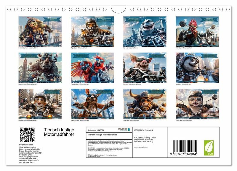 Tauchen Sie ein in die Welt der "Tierisch lustige Motorradfahrer". Unser einzigartiger Jahreskalender ist der perfekte Begleiter für jeden Motorradenthusiasten, der Humor und Abenteuer auf zwei Rädern schätzt. Monat für Monat werden Sie von charmant-witzigen Tieren auf Motorrädern begrüßt, begleitet von humorvollen Zitaten, die garantiert ein Lächeln auf Ihre Lippen zaubern. Ideal als Geschenk für Freunde des Motorradfahrens oder als fröhliche Dekoration für Ihr eigenes Zuhause. Lassen Sie sich jeden Tag aufs Neue von unseren vierbeinigen Freunden inspirieren und erinnern Sie sich daran, dass…mehr