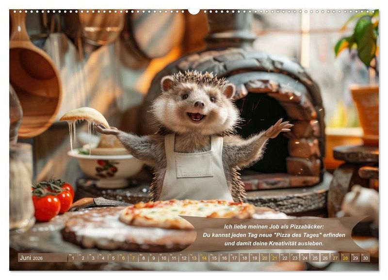 Tauchen Sie ein in die Welt der "Tierisch lustigen Pizzabäcker", dem Jahreskalender, der die Herzen aller Pizza-Liebhaber höher schlagen lässt. Jeden Monat erwartet Sie ein einzigartiges KI generiertes Bild, das unsere tierischen Freunde in Kochoutfits zeigt, wie sie mit Hingabe und einer Prise Humor die leckersten Pizzen backen. Dieser Kalender bringt garantiert ein Lächeln auf Ihre Lippen. Mit Sprüchen, die so köstlich sind wie die Pizzen selbst, bietet dieser Kalender nicht nur eine visuelle Freude, sondern auch eine monatliche Dosis Humor. Ideal als Geschenk für Pizzabäcker, Pizzeria-Inhaber oder einfach für jeden, der eine tiefe Liebe für Pizza und Tiere hegt. Lassen Sie sich jeden Tag des Jahres von der Freude anstecken, die diese tierischen Pizzabäcker in Ihre Küche bringen.