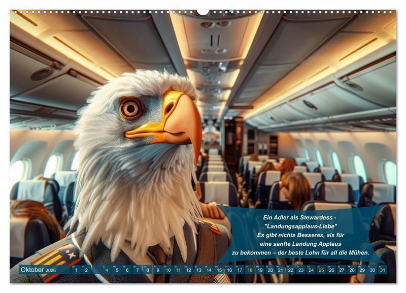 Tauchen Sie ein in die Welt der Lüfte mit unserem Jahreskalender "Tierisch lustige Stewardessen". Jeder Monat überrascht mit einem herzerwärmenden KI generierten Bild von Tieren, die in Stewardessen-Outfits gekleidet sind, begleitet von humorvollen Sprüchen, die die einzigartigen Herausforderungen und Freuden des Flugbegleiterdaseins aufgreifen. Dieser Kalender ist eine Hommage an die unermüdlichen Helden der Lüfte. Perfekt für jede Stewardess, die eine Extraportion Freude in ihrem Alltag verdient, oder als charmantes Geschenk, das garantiert ein Lächeln auf die Lippen zaubert. Lassen Sie sich jeden Monat von unseren tierischen Crewmitgliedern begeistern und entdecken Sie, warum das Fliegen die lustigste Reise von allen ist. Gute Laune pur für zu Hause oder die Crew-Ruhezone.