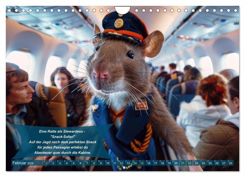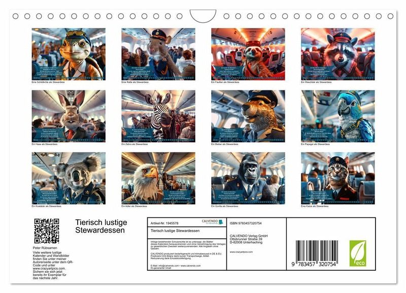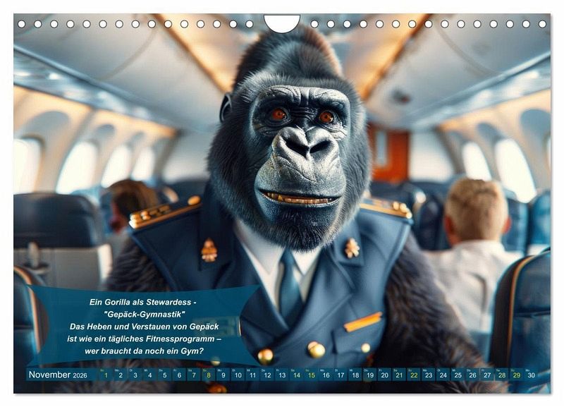 Tauchen Sie ein in die Welt der Lüfte mit unserem Jahreskalender "Tierisch lustige Stewardessen". Jeder Monat überrascht mit einem herzerwärmenden KI generierten Bild von Tieren, die in Stewardessen-Outfits gekleidet sind, begleitet von humorvollen Sprüchen, die die einzigartigen Herausforderungen und Freuden des Flugbegleiterdaseins aufgreifen. Dieser Kalender ist eine Hommage an die unermüdlichen Helden der Lüfte. Perfekt für jede Stewardess, die eine Extraportion Freude in ihrem Alltag verdient, oder als charmantes Geschenk, das garantiert ein Lächeln auf die Lippen zaubert. Lassen Sie sich…mehr