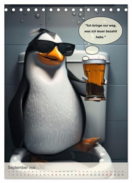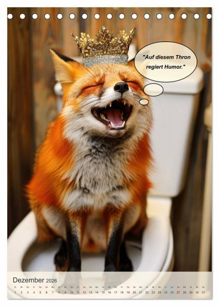 Entdecken Sie den ultimativen Jahreskalender, der jeden Tag mit einem Lächeln beginnt. Unser einzigartiger Kalender zum Thema "Tierisch lustiger Toilettenhumor" ist die perfekte Mischung aus Charme und Witz, der Ihr Bad oder Toilette aufhellen wird. Jeden Monat werden Sie von einem anderen, herrlich humorvollen durch Ki generierten Bild begrüßt, das unsere liebsten Vierbeiner in den lustigsten Toilettenmomenten zeigt. Begleitet von schelmischen Zitaten, die perfekt auf jedes Bild abgestimmt sind, ist dieser Kalender garantiert ein Gesprächsstarter.