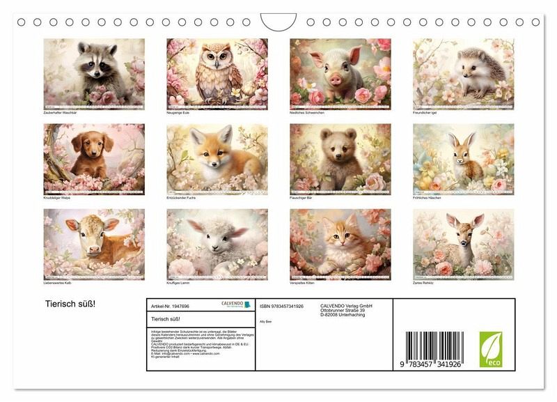 Tauchen Sie ein in die bezaubernde Welt der Tierjungen mit diesem wunderschönen KI-Kalender. Jeder Monat präsentiert liebevolle KI-Illustrationen von niedlichen Tierjungen in sanften Pastelltönen, die Herz und Seele berühren. Von verspielten Kätzchen über neugierige Waschbären bis hin zu knuffigen Welpen - erleben Sie die zarten Momente der Kindheit in der Tierwelt, eingefangen in sanften Illustrationen. Verschönern Sie Ihr Zuhause, das Kinderzimmer Ihrer Kleinen oder Büro mit diesem einzigartigen Kalender und lassen Sie sich jeden Tag von der unschuldigen Schönheit der Natur verzaubern. Holen Sie sich jetzt diesen niedlichen Kalender und erleben Sie ein Jahr voller süßer und inspirierender Augenblicke!