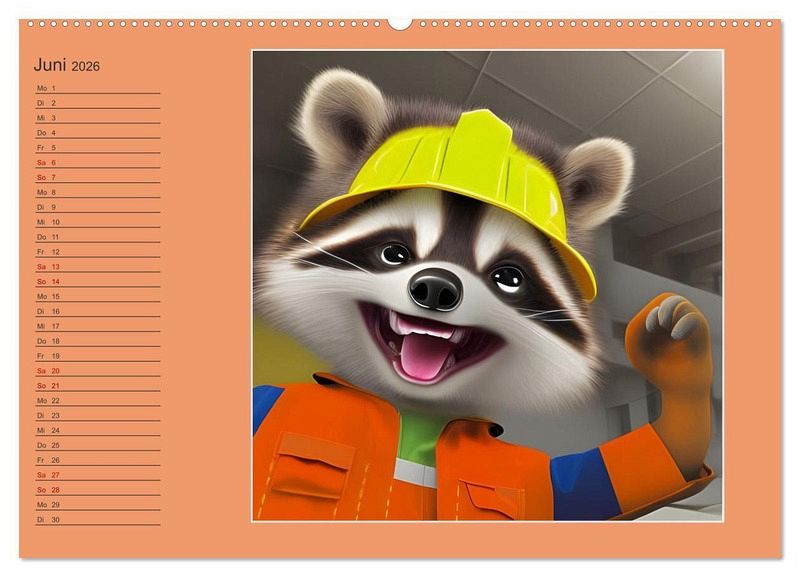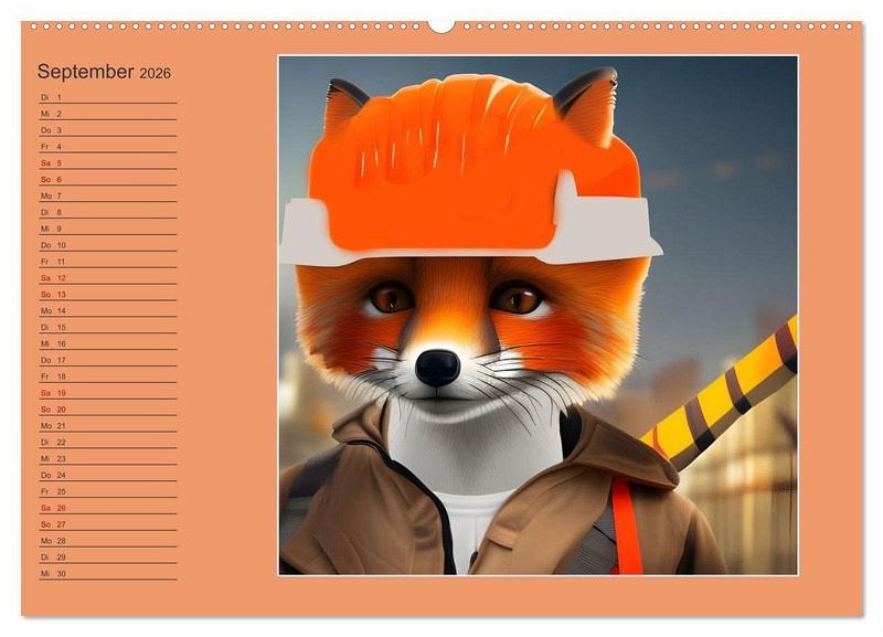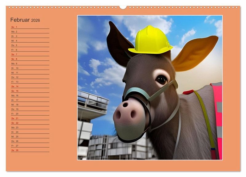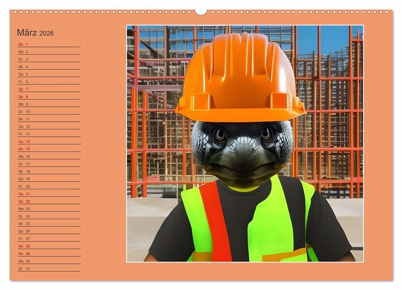 In diesem Kalender geht es nicht nur zu wie bei Hund und Katze. Viele weitere Tiere werden hier als Bauarbeiter tätig. Kommt mit auf die Baustelle.