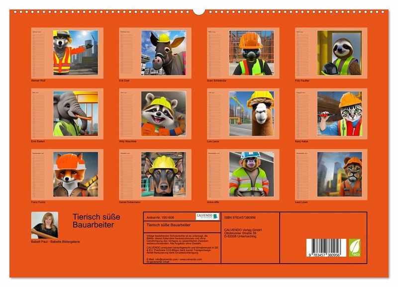 PREMIUM-LINIE - Brillanter Fotokalender mit 12 wunderschönen Motiven, Kunstdruck in Hochglanz in Museumsqualität.QUALITÄT - edle Materialien, stabile Rückwand mit 2 innovativen Einstecktaschen für eine optimale Präsentation an der Wand.NACHHALTIG - deutliche Abfallreduzierung durch bedarfsgerechte Einzelstückfertigung, umweltfreundliches FSC-zertifiziertes Papier, Produktion in Deutschland, klimabewusste Logistik.PERFEKTES GESCHENK - Kalender für Freunde und Familie, für Kinder und Erwachsene, jung und alt, zu Weihnachten, Geburtstag oder zwischendurch.Lustige Tiere als Bauarbeiter angezogen auf der Baustelle von Autor(in): Babett's Bildergalerie