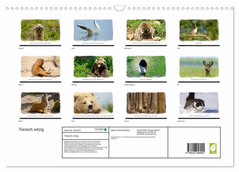 QUALITÄT - Hochwertiger Fotokalender mit 12 wunderschönen Motiven auf lichtbeständigem Bilderdruckpapier, robuste Spiralbindung mit Aufhängebügel.NACHHALTIG - deutliche Abfallreduzierung durch bedarfsgerechte Einzelstückfertigung, umweltfreundliches FSC-zertifiziertes Papier, Produktion in Deutschland, klimabewusste Logistik.PERFEKTES GESCHENK - Kalender für Freunde und Familie, für Kinder und Erwachsene, jung und alt, zu Weihnachten, Geburtstag oder zwischendurch.VIELFALT - Bildkalender in verschiedenen Formaten, z.B. DIN A5, DIN A4, DIN A3 sowie DIN A2. Ob Naturmotiv, Gemälde oder Fotos, ideal für ein persönliches Wohlfühlambiente.12 humorvolle Tierbilder mit treffenden Sprüchen. von Autor(in): Claudia Elsner