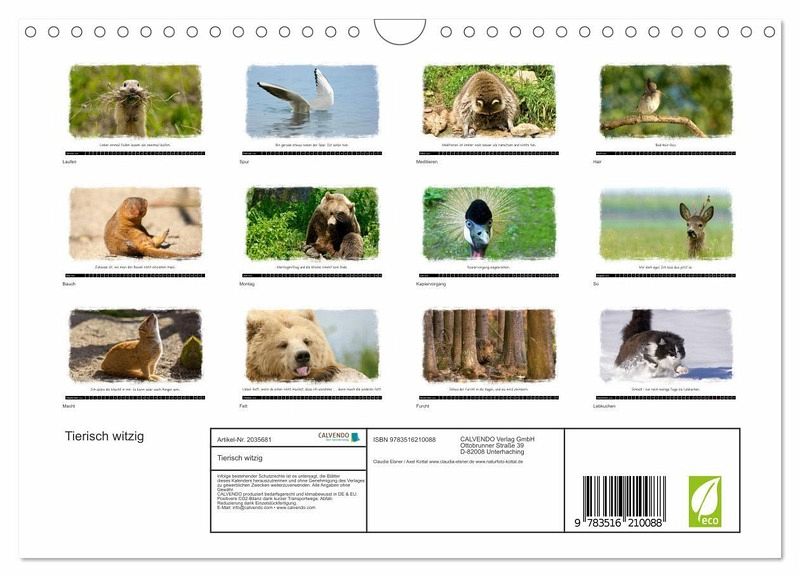 Lustige Tierfotografien des Naturfotografen Axel Kottal gewürzt mit treffenden Sprüchen. Ein Kalender, der jeden Monat fröhlich stimmt.