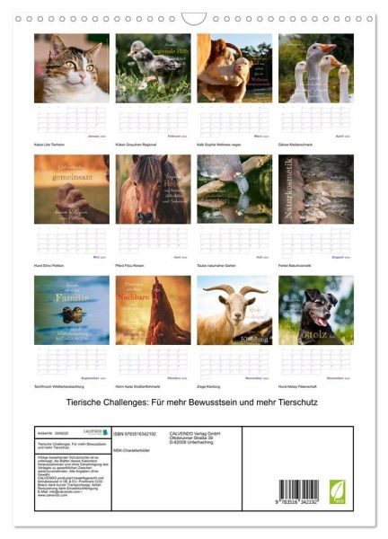 QUALITÄT - Hochwertiger Fotokalender mit 12 wunderschönen Motiven auf lichtbeständigem Bilderdruckpapier, robuste Spiralbindung mit Aufhängebügel.NACHHALTIG - deutliche Abfallreduzierung durch bedarfsgerechte Einzelstückfertigung, umweltfreundliches FSC-zertifiziertes Papier, Produktion in Deutschland, klimabewusste Logistik.PERFEKTES GESCHENK - Kalender für Freunde und Familie, für Kinder und Erwachsene, jung und alt, zu Weihnachten, Geburtstag oder zwischendurch.VIELFALT - Bildkalender in verschiedenen Formaten, z.B. DIN A5, DIN A4, DIN A3 sowie DIN A2. Ob Naturmotiv, Gemälde oder Fotos, ideal für ein persönliches Wohlfühlambiente.Zwölf kleine aber mutige Herausforderungen, mit denen Du Großes für Dich, Deine Welt und den Tierschutz leisten kannst. von Autor(in): Mandy Schwarzbach-Kraatz