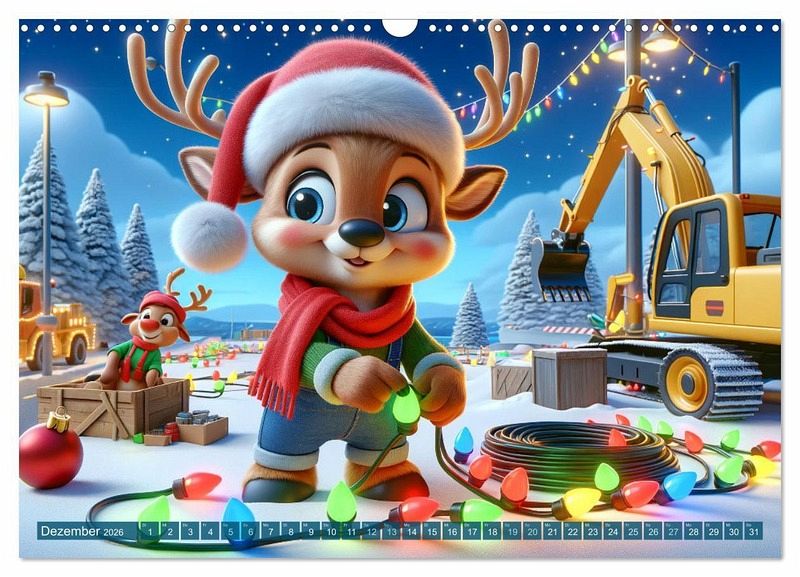 Dezember: Das festliche Rentier als Weihnachtsdekorateur: Lichterglanz auf der Baustelle