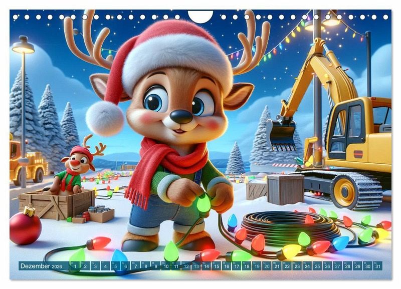 Dezember: Das festliche Rentier als Weihnachtsdekorateur: Lichterglanz auf der Baustelle