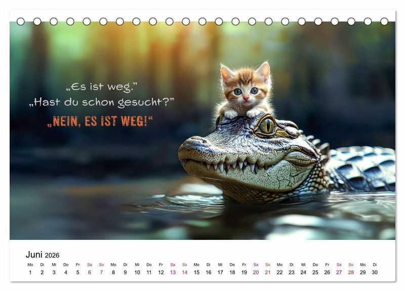 Schnallen Sie sich an für ein Jahr voller Humor. Dieser lustige, pfiffige Kalender bringt Sie zum Lachen, Lächeln oder Schmunzeln. Jedes KI-Bild ist ein Highlight: ein witziges Tier - ob ein Pferd mit Hut, zwei völlig unterschiedliche Tierfreunde oder ein lachender Esel - kombiniert mit einem cleveren Spruch, der genau ins Schwarze trifft. Da Lachen ja bekanntlich die Gesundheit fördert und werden solch ulkige Weisheiten dann noch mit passenden Bildern versehen, ist das die vollendete Symbiose. Ein perfektes Geschenk für alle, die nicht nur ein tierisch gutes, sondern auch tierisch witziges Jahr erleben möchten