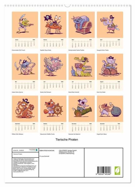 PREMIUM-LINIE - Brillanter Fotokalender mit 12 wunderschönen Motiven, Kunstdruck in Hochglanz in Museumsqualität.QUALITÄT - edle Materialien, stabile Rückwand mit 2 innovativen Einstecktaschen für eine optimale Präsentation an der Wand.NACHHALTIG - deutliche Abfallreduzierung durch bedarfsgerechte Einzelstückfertigung, umweltfreundliches FSC-zertifiziertes Papier, Produktion in Deutschland, klimabewusste Logistik.PERFEKTES GESCHENK - Kalender für Freunde und Familie, für Kinder und Erwachsene, jung und alt, zu Weihnachten, Geburtstag oder zwischendurch.Eine kleine aus lustigen Tieren zusammengestellte Piratencrew von Autor(in): Luca Schmidt