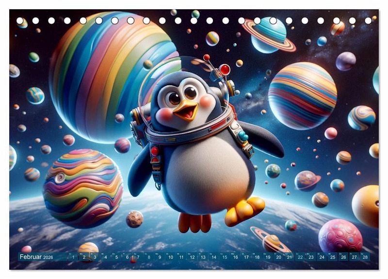 Februar: Kosmischer Pinguin-Spaß: Schwerelose Abenteuer
