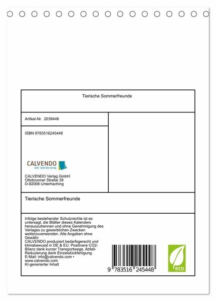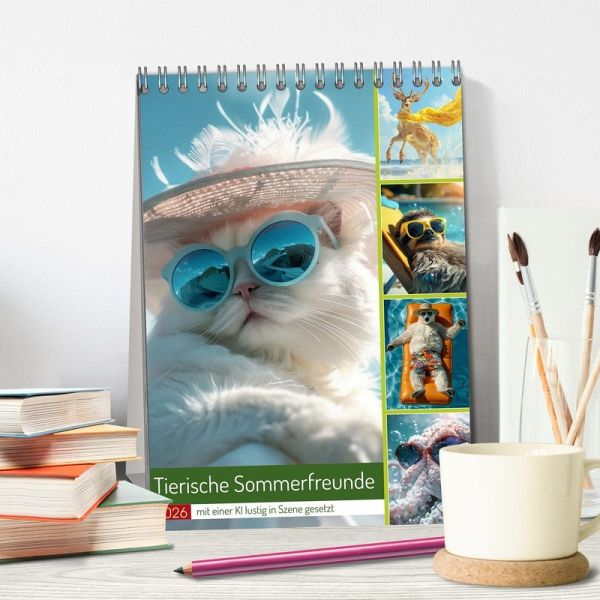 Schnapp dir die Sonnencreme, denn mit diesem Kalender wirst du das ganze Jahr über tierisch verwöhnt! Unsere flauschigen, kleinen und großen Freunde zeigen dir, wie Sommer richtig geh. Hol dir deine tägliche Portion Sommer und entdecke, wie cool Tiere wirklich sind! Alle hier gezeigten Bilder wurden mit Sorgfalt, Liebe und mit Hilfe einer KI generiert. Abschließend werden sie mit Bildbearbeitungsprogrammen überarbeitet und in den Kalender eingefügt.