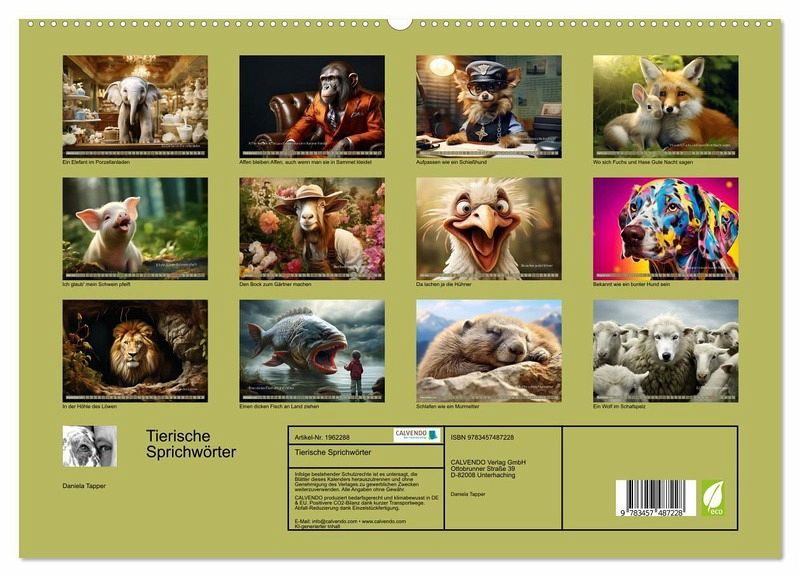 PREMIUM-LINIE - Brillanter Fotokalender mit 12 wunderschönen Motiven, Kunstdruck in Hochglanz in Museumsqualität.QUALITÄT - edle Materialien, stabile Rückwand mit 2 innovativen Einstecktaschen für eine optimale Präsentation an der Wand.NACHHALTIG - deutliche Abfallreduzierung durch bedarfsgerechte Einzelstückfertigung, umweltfreundliches FSC-zertifiziertes Papier, Produktion in Deutschland, klimabewusste Logistik.PERFEKTES GESCHENK - Kalender für Freunde und Familie, für Kinder und Erwachsene, jung und alt, zu Weihnachten, Geburtstag oder zwischendurch.Redewendungen mal ganz wörtlich genommen von Autor(in): Daniela Tapper