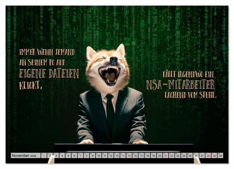 Ein origineller Kalender mit KI-generierten Tierporträts in digitalen Alltagsmomenten; von gestressten Admin-Waschbären bis zum kaffeeverliebten Faultier im Boot-Modus. Jeder Monat überrascht mit einem witzigen Spruch aus der Welt der Technik, bissig, charmant oder nerdig. Ideal für IT-Fans, KI-Junkies, Bürohumor-Liebhaber und alle, die WLAN als Lebenselixier brauchen. Dieser Kalender verbindet Pixelkunst mit Pointen; tierisch gut und technisch schräg!