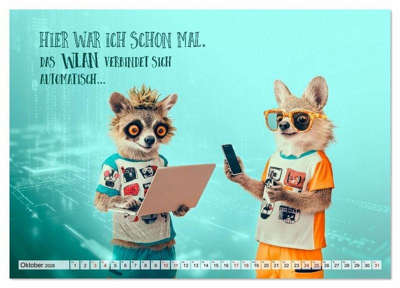 Ein origineller Kalender mit KI-generierten Tierporträts in digitalen Alltagsmomenten; von gestressten Admin-Waschbären bis zum kaffeeverliebten Faultier im Boot-Modus. Jeder Monat überrascht mit einem witzigen Spruch aus der Welt der Technik, bissig, charmant oder nerdig. Ideal für IT-Fans, KI-Junkies, Bürohumor-Liebhaber und alle, die WLAN als Lebenselixier brauchen. Dieser Kalender verbindet Pixelkunst mit Pointen; tierisch gut und technisch schräg!