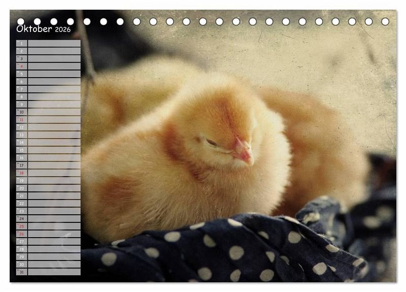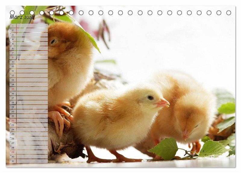 Süße Küken, leises Piepen, wer möchte sie nicht anfassen und am liebsten mit Nachhause nehmen..... Dieser tierische Terminkalender aus fantasievollen Stillleben begleitet Sie durch das Jahr mit Freude und Spaß an der Tierwelt.