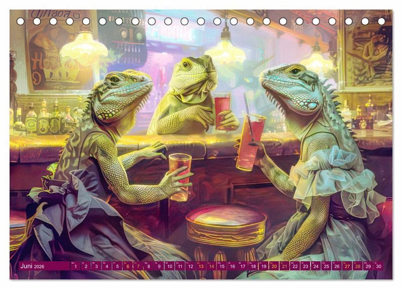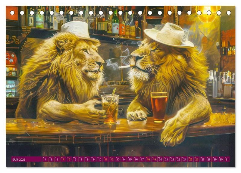 Wie wohl tierisches Barleben aussehen könnte? Mit unserem Kalender mit dem Titel Tierisches Barleben nimmt die Vorstellung Form an. Lassen Sie sich von Dalmatinern, Löwen, Echsen, Kamelen und weiteren Tieren in neonbeleuchteten Bars verzaubern, wie Sie sie noch nie zuvor gesehen haben.