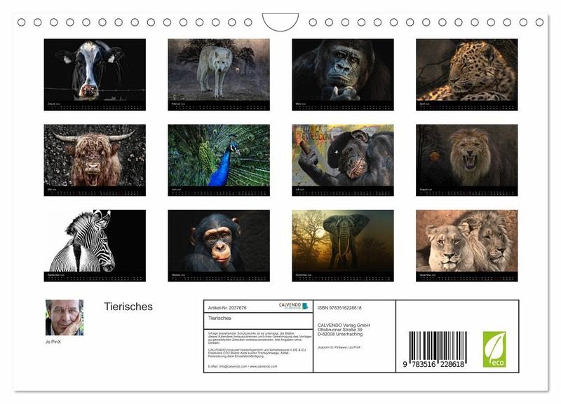 QUALITÄT - Hochwertiger Fotokalender mit 12 wunderschönen Motiven auf lichtbeständigem Bilderdruckpapier, robuste Spiralbindung mit Aufhängebügel.NACHHALTIG - deutliche Abfallreduzierung durch bedarfsgerechte Einzelstückfertigung, umweltfreundliches FSC-zertifiziertes Papier, Produktion in Deutschland, klimabewusste Logistik.PERFEKTES GESCHENK - Kalender für Freunde und Familie, für Kinder und Erwachsene, jung und alt, zu Weihnachten, Geburtstag oder zwischendurch.VIELFALT - Bildkalender in verschiedenen Formaten, z.B. DIN A5, DIN A4, DIN A3 sowie DIN A2. Ob Naturmotiv, Gemälde oder Fotos, ideal für ein persönliches Wohlfühlambiente.Eindrucksvolle Tierbilder von Autor(in): Jo.PinX