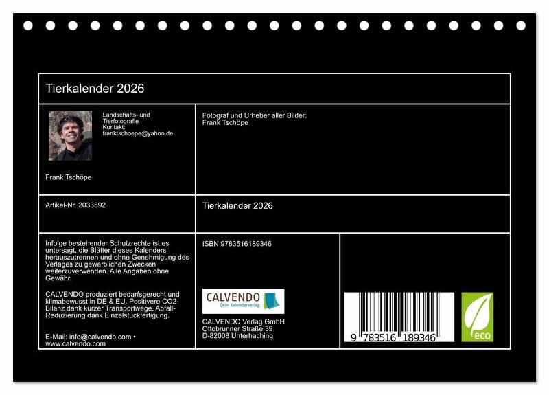 QUALITÄT - Hochwertiger Fotokalender mit 12 wunderschönen Motiven auf lichtbeständigem Bilderdruckpapier, robuste Spiralbindung.NACHHALTIG - deutliche Abfallreduzierung durch bedarfsgerechte Einzelstückfertigung, umweltfreundliches FSC-zertifiziertes Papier, Produktion in Deutschland, klimabewusste Logistik.PERFEKTES GESCHENK - Kalender für Freunde und Familie, für Kinder und Erwachsene, jung und alt, zu Weihnachten, Geburtstag oder zwischendurch.VIELFALT - Bildkalender in verschiedenen Formaten, z.B. DIN A5, DIN A4, DIN A3 sowie DIN A2. Ob Naturmotiv, Gemälde oder Fotos, ideal für ein persönliches Wohlfühlambiente.Eine Auswahl phantastischer Tierfotos von Autor(in): Frank Tschöpe