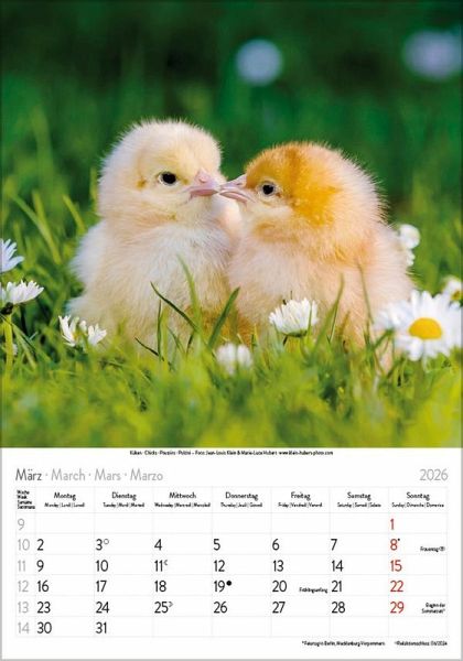 Süße Tierbabys sind die Hauptdarsteller in diesem Wandkalender, der Groß und Klein gleichermaßen gefällt.