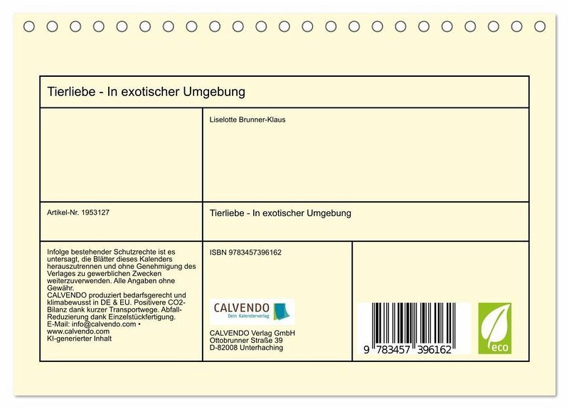 QUALITÄT - Hochwertiger Fotokalender mit 12 wunderschönen Motiven auf lichtbeständigem Bilderdruckpapier, robuste Spiralbindung.NACHHALTIG - deutliche Abfallreduzierung durch bedarfsgerechte Einzelstückfertigung, umweltfreundliches FSC-zertifiziertes Papier, Produktion in Deutschland, klimabewusste Logistik.PERFEKTES GESCHENK - Kalender für Freunde und Familie, für Kinder und Erwachsene, jung und alt, zu Weihnachten, Geburtstag oder zwischendurch.VIELFALT - Bildkalender in verschiedenen Formaten, z.B. DIN A5, DIN A4, DIN A3 sowie DIN A2. Ob Naturmotiv, Gemälde oder Fotos, ideal für ein persönliches Wohlfühlambiente.Zarte Bande zwischen Mensch und Tier von Autor(in): Liselotte Brunner-Klaus