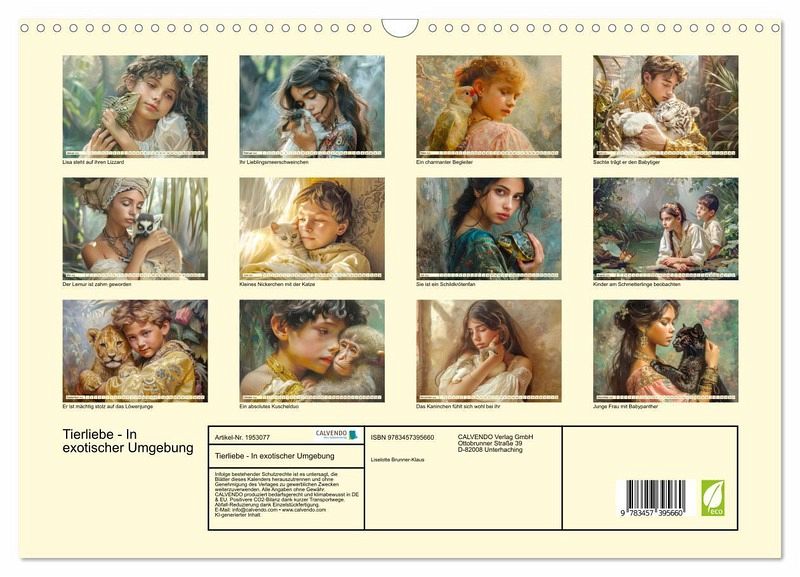 QUALITÄT - Hochwertiger Fotokalender mit 12 wunderschönen Motiven auf lichtbeständigem Bilderdruckpapier, robuste Spiralbindung mit Aufhängebügel.NACHHALTIG - deutliche Abfallreduzierung durch bedarfsgerechte Einzelstückfertigung, umweltfreundliches FSC-zertifiziertes Papier, Produktion in Deutschland, klimabewusste Logistik.PERFEKTES GESCHENK - Kalender für Freunde und Familie, für Kinder und Erwachsene, jung und alt, zu Weihnachten, Geburtstag oder zwischendurch.VIELFALT - Bildkalender in verschiedenen Formaten, z.B. DIN A5, DIN A4, DIN A3 sowie DIN A2. Ob Naturmotiv, Gemälde oder Fotos, ideal für ein persönliches Wohlfühlambiente.Zarte Bande zwischen Mensch und Tier von Autor(in): Liselotte Brunner-Klaus