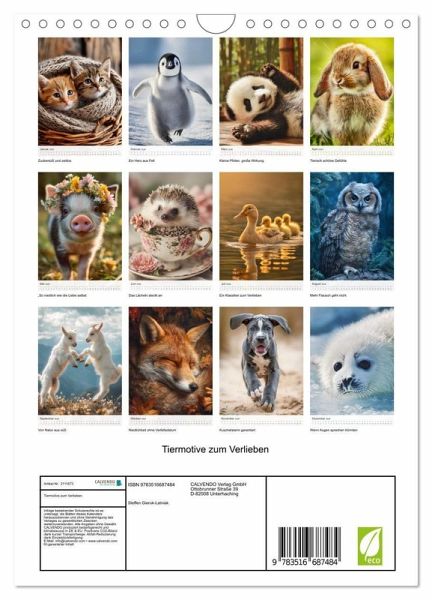 QUALITÄT - Hochwertiger Fotokalender mit 12 wunderschönen Motiven auf lichtbeständigem Bilderdruckpapier, robuste Spiralbindung mit Aufhängebügel.NACHHALTIG - deutliche Abfallreduzierung durch bedarfsgerechte Einzelstückfertigung, umweltfreundliches FSC-zertifiziertes Papier, Produktion in Deutschland, klimabewusste Logistik.PERFEKTES GESCHENK - Kalender für Freunde und Familie, für Kinder und Erwachsene, jung und alt, zu Weihnachten, Geburtstag oder zwischendurch.VIELFALT - Bildkalender in verschiedenen Formaten, z.B. DIN A5, DIN A4, DIN A3 sowie DIN A2. Ob Naturmotiv, Gemälde oder Fotos, ideal für ein persönliches Wohlfühlambiente.Tiermotive voller Niedlichkeit sind zeitlose Klassiker, die Herzen berühren und sich perfekt als Geschenke eignen. von Autor(in): Steffen Gierok ; Magik Artist Design