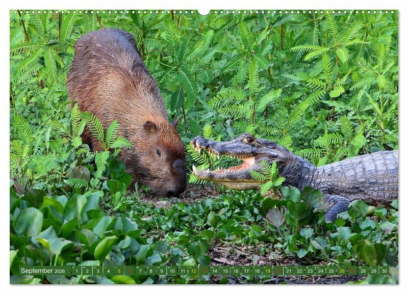 September: Wasserschwein mit Brillenkaiman, Nord-Pantanal, Brasilien
