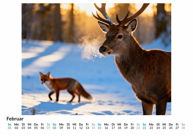 Deutschlands Wälder, Felder und Berge sind die Heimat einer faszinierenden Tierwelt, die sich oft im Verborgenen hält. Der Kalender "Tierwelt Deutschlands" rückt diese verborgenen Schätze ins Licht und präsentiert eine Sammlung von Porträts und Szenen heimischer Tiere. Dieser Kalender ist eine gute Wahl für: Naturfreunde, die die heimische Fauna schätzen. Menschen auf der Suche nach einem stilvollen Wandschmuck mit Naturbezug. Alle, die ein besonderes Geschenk für Tierliebhaber suchen. Der Kalender fängt diese Momente in zwölf Monatsblättern ein. Von der wachsamen Eule in der Dämmerung bis zum springenden Fuchs im Schnee zeigt jede Seite eine andere Facette der lokalen Tierwelt. Jedes Motiv wurde durch einen innovativen digitalen Prozess erschaffen, der aus einer unendlichen Menge an visuellen Informationen neue, einzigartige Szenen komponiert. Das Ergebnis sind Bilder, die eine besondere Stimmung transportieren und die Tiere in charaktervollen Porträts und lebendigen Szenen darstellen. Was der Kalender bietet: Zwölf Monatsmotive mit Tieren aus Deutschland. Ein übersichtliches Kalendarium für Termine und Notizen. Ein Begleiter durch das Jahr, der jeden Monat eine neue Perspektive bietet. Dieser Kalender ist eine Hommage an die Vielfalt und Schönheit der Tiere vor unserer Haustür. Er lädt dazu ein, die heimische Tierwelt Monat für Monat neu zu entdecken. Eine Entdeckungsreise durch die "Tierwelt Deutschlands" erwartet den Betrachter.