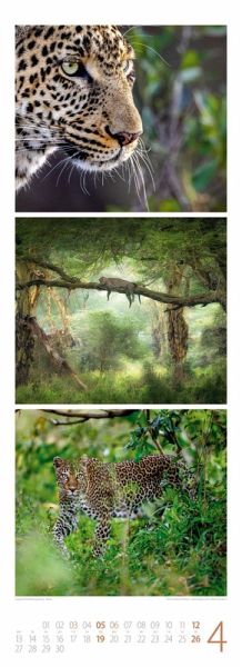 Dekorative Bild-Triplets zeigen die Tierwelt unserer Erde im Kontext ihrer natürlichen Lebensräume Tier-Kalender im schlanken Hochformat: 24x66 cm Hochwertiger Wandkalender mit 170 g/qm Papier und Spiralbindung Auf Papier aus nachhaltiger Forstwirtschaft in Deutschland produziert Leistet einen Beitrag zum Ackermann Firmenwald Deutschsprachiges Kalendarium