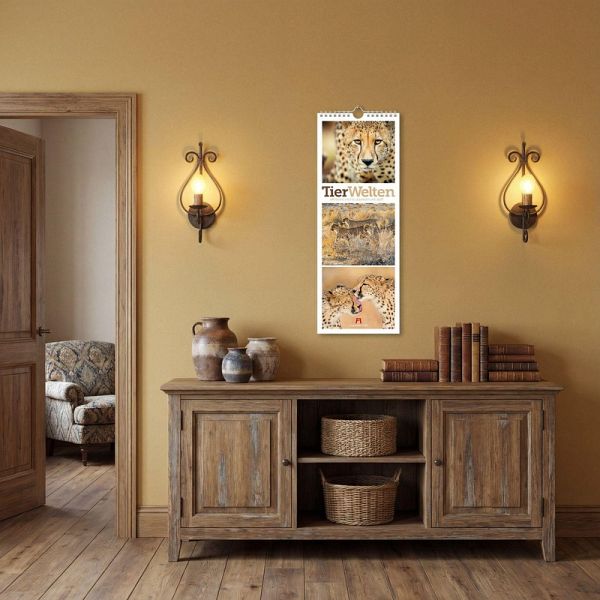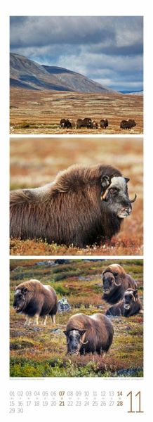 Dekorative Bild-Triplets zeigen die Tierwelt unserer Erde im Kontext ihrer natürlichen Lebensräume Tier-Kalender im schlanken Hochformat: 24x66 cm Hochwertiger Wandkalender mit 170 g/qm Papier und Spiralbindung Auf Papier aus nachhaltiger Forstwirtschaft in Deutschland produziert Leistet einen Beitrag zum Ackermann Firmenwald Deutschsprachiges Kalendarium