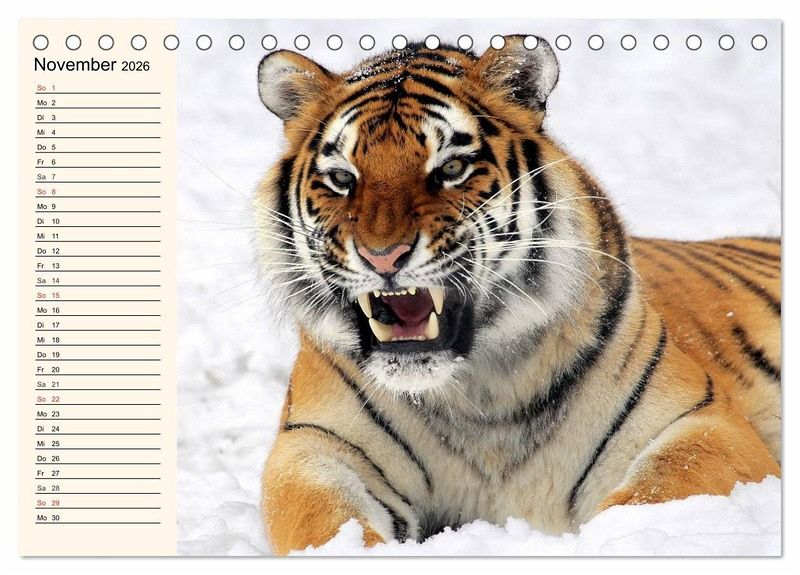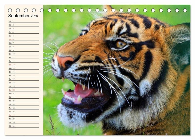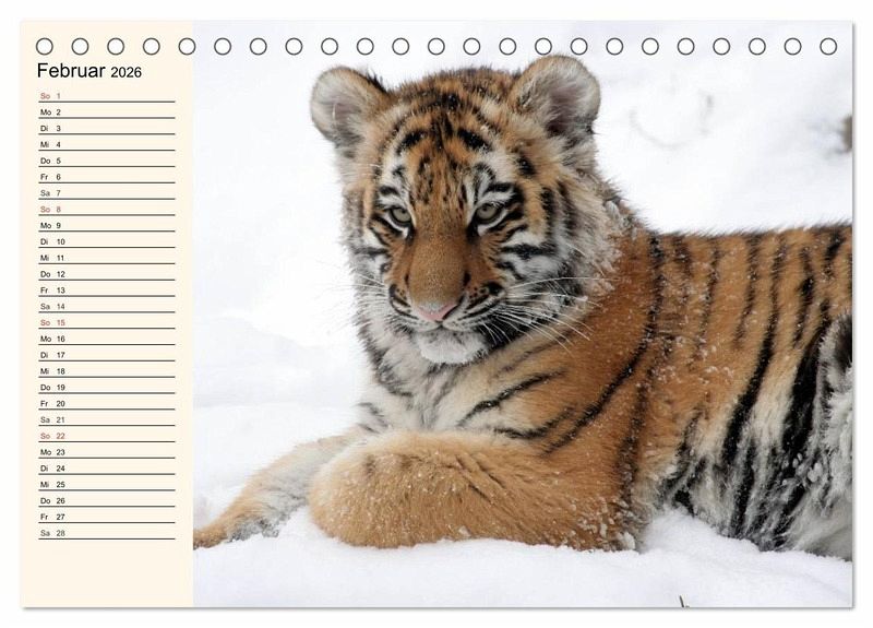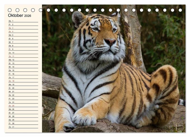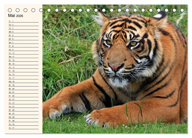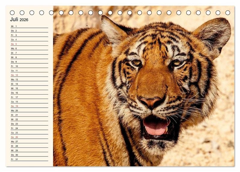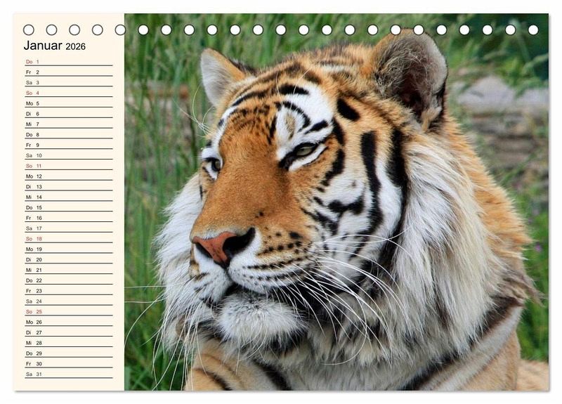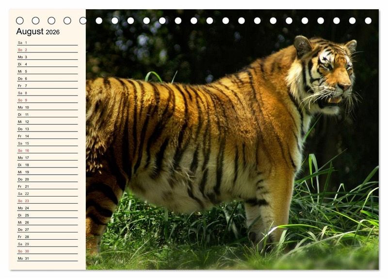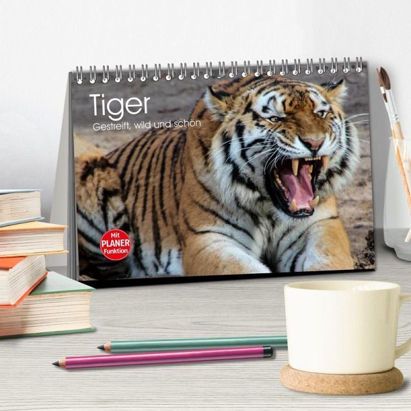 Der Tiger gilt als die größte Katzenart und durch sein gestreiftes Muster ist er auch unverwechselbar. Er gehört zu den schönsten Tieren der Welt und er ist ein Symbol für den modernen Artenschutz. Weltweit leben nur noch ca. 3.200 Tiger in freier Wildbahn und man kann nur hoffen dass er der Welt erhalten bleibt. Ein schöner Planer für alle Tiger-Freunde.