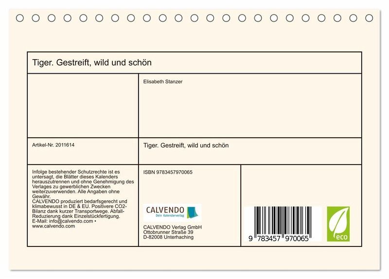 QUALITÄT - Hochwertiger Fotokalender mit 12 wunderschönen Motiven auf lichtbeständigem Bilderdruckpapier, robuste Spiralbindung.NACHHALTIG - deutliche Abfallreduzierung durch bedarfsgerechte Einzelstückfertigung, umweltfreundliches FSC-zertifiziertes Papier, Produktion in Deutschland, klimabewusste Logistik.PERFEKTES GESCHENK - Kalender für Freunde und Familie, für Kinder und Erwachsene, jung und alt, zu Weihnachten, Geburtstag oder zwischendurch.VIELFALT - Bildkalender in verschiedenen Formaten, z.B. DIN A5, DIN A4, DIN A3 sowie DIN A2. Ob Naturmotiv, Gemälde oder Fotos, ideal für ein persönliches Wohlfühlambiente.Gestreifte Kraftpakete in vollendeter Schönheit von Autor(in): Elisabeth Stanzer