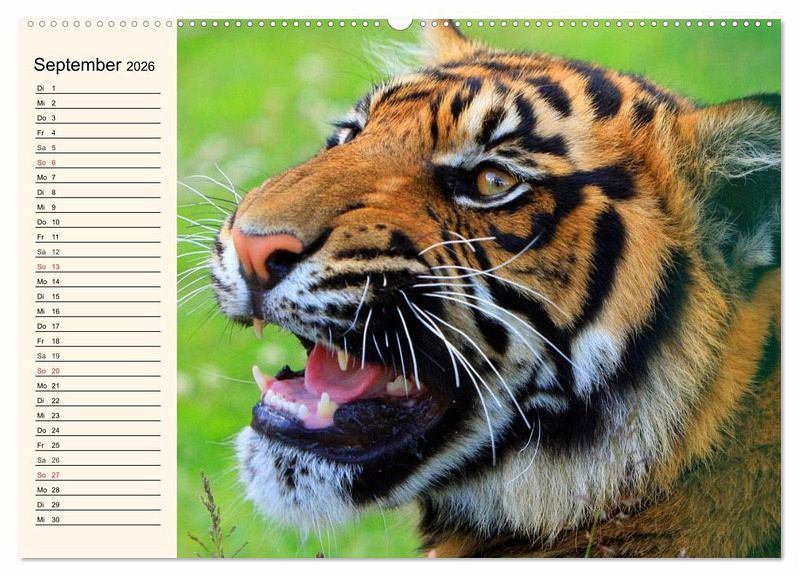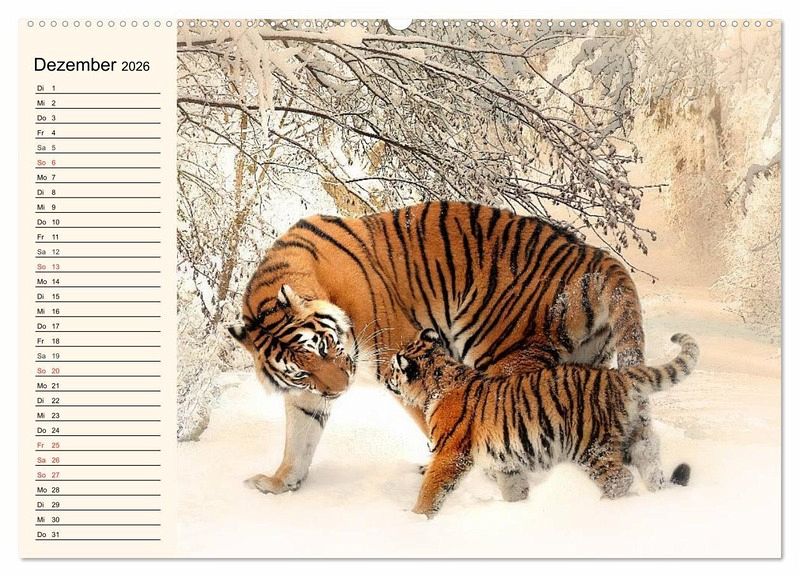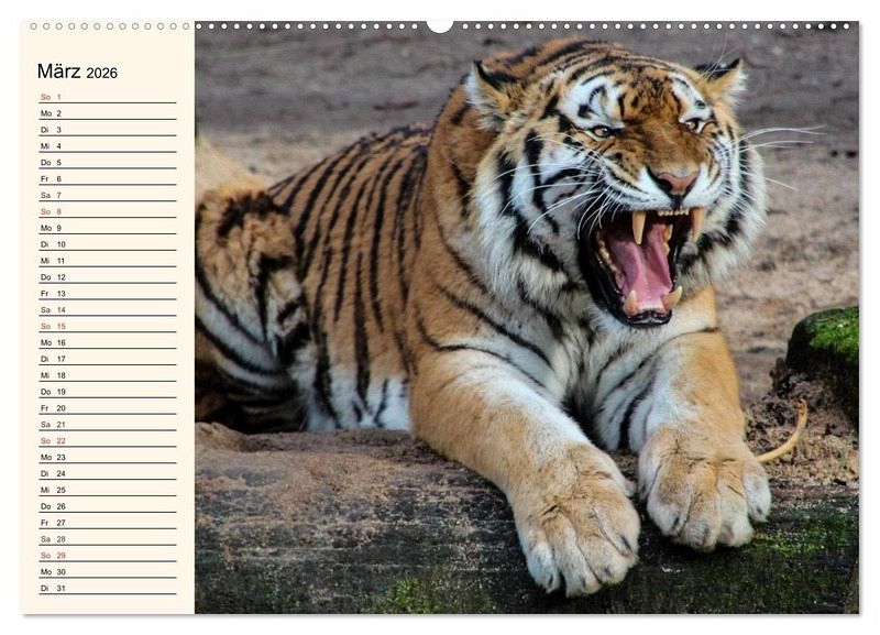 Der Tiger gilt als die größte Katzenart und durch sein gestreiftes Muster ist er auch unverwechselbar. Er gehört zu den schönsten Tieren der Welt und er ist ein Symbol für den modernen Artenschutz. Weltweit leben nur noch ca. 3.200 Tiger in freier Wildbahn und man kann nur hoffen dass er der Welt erhalten bleibt. Ein schöner Planer für alle Tiger-Freunde.