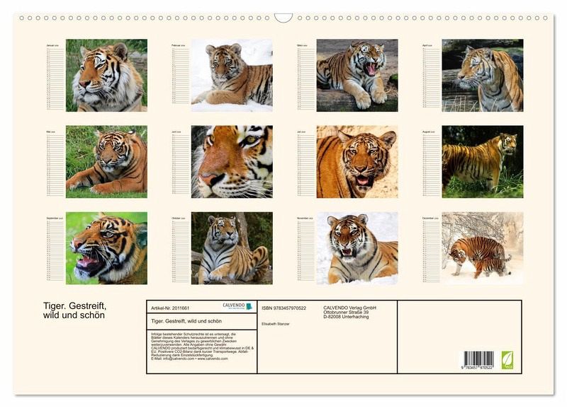 QUALITÄT - Hochwertiger Fotokalender mit 12 wunderschönen Motiven auf lichtbeständigem Bilderdruckpapier, robuste Spiralbindung mit Aufhängebügel.NACHHALTIG - deutliche Abfallreduzierung durch bedarfsgerechte Einzelstückfertigung, umweltfreundliches FSC-zertifiziertes Papier, Produktion in Deutschland, klimabewusste Logistik.PERFEKTES GESCHENK - Kalender für Freunde und Familie, für Kinder und Erwachsene, jung und alt, zu Weihnachten, Geburtstag oder zwischendurch.VIELFALT - Bildkalender in verschiedenen Formaten, z.B. DIN A5, DIN A4, DIN A3 sowie DIN A2. Ob Naturmotiv, Gemälde oder Fotos, ideal für ein persönliches Wohlfühlambiente.Gestreifte Kraftpakete in vollendeter Schönheit von Autor(in): Elisabeth Stanzer
