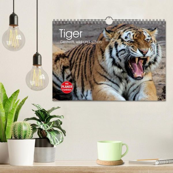 Der Tiger gilt als die größte Katzenart und durch sein gestreiftes Muster ist er auch unverwechselbar. Er gehört zu den schönsten Tieren der Welt und er ist ein Symbol für den modernen Artenschutz. Weltweit leben nur noch ca. 3.200 Tiger in freier Wildbahn und man kann nur hoffen dass er der Welt erhalten bleibt. Ein schöner Planer für alle Tiger-Freunde.