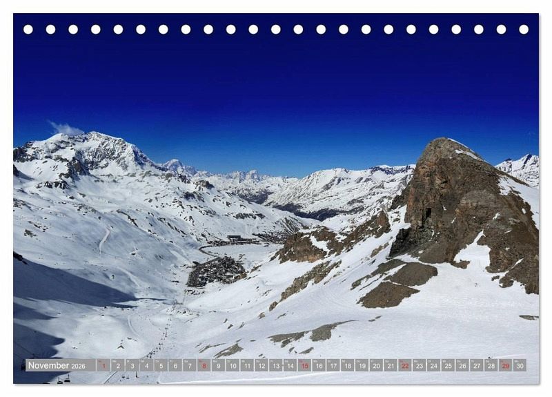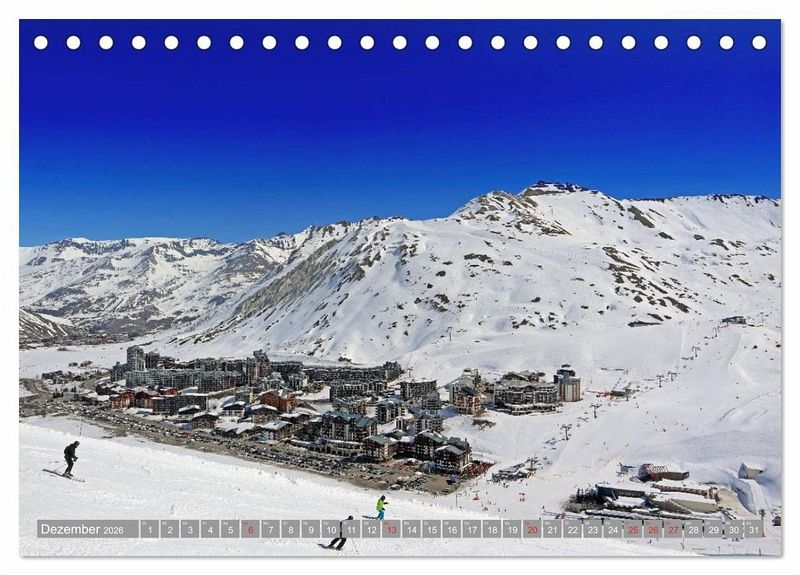 Tignes / Val d´Isère ist eines der größten Skigebiete in Frankreich. Erkunden Sie mit diesem Kalender das hochgelegene und schneesichere Espace Killy, das auf 300 km Pisten Wintersport pur und einen wundervollen Blick über die Gipfel der Alpen bis hin zum Mont Blanc bietet.