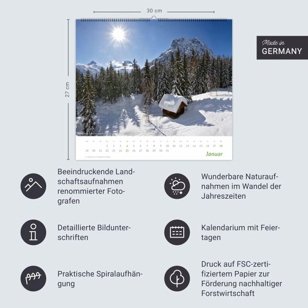 - Fotokalender 2026 mit Aussicht: Tolle Aufnahmen von der ganzen Schönheit der Alpen in Deutschland, Österreich und der Schweiz - Die Alm-Wiese für die Wand: Bildkalender im Format 30 x 27 cm, der die volle Pracht der höchsten Gipfel Europas nach Hause bringt- Posterkalender 2026 für alle, die der Berg ruft: Majestätische Bergpanoramen für Alpinismus-Fans und Gipfel-Stürmer:innen- Die ideale Geschenkidee für Bergsteiger:innen: Alpen-Kalender mit magischen Ausblicken auf Berge, Seen und Fels-Landschaften- Für Bergfexe und Outdoor-Begeisterte: Naturkalender von Heye im Athesia Kalenderverlag