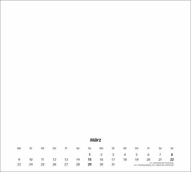 So schön kann günstig sein! Lassen Sie Ihre eigenen Werke zur Geltung kommen! Der Kalender eignet sich auch hervorragend als Geschenk. Mit weißen Innenseiten.