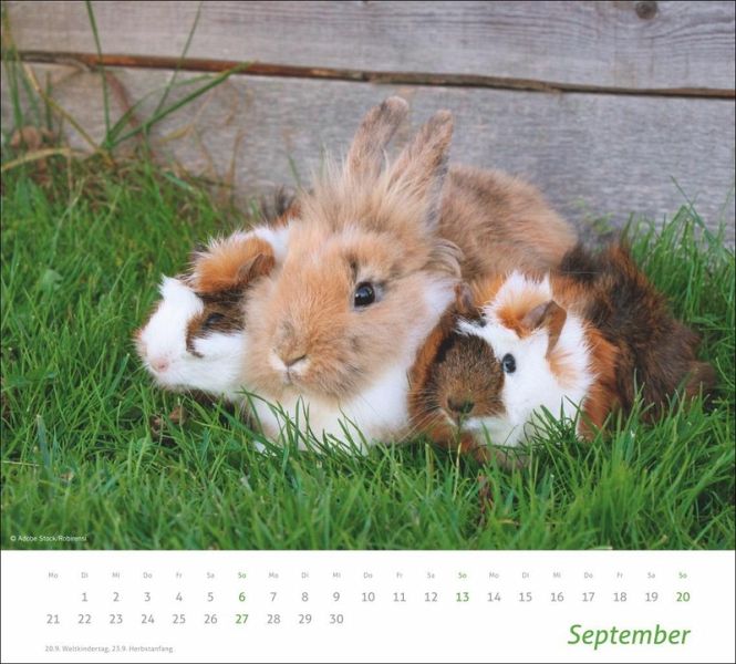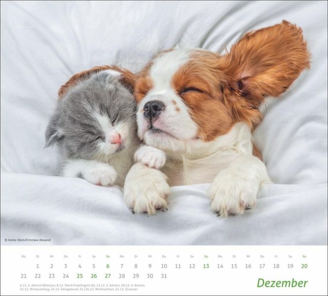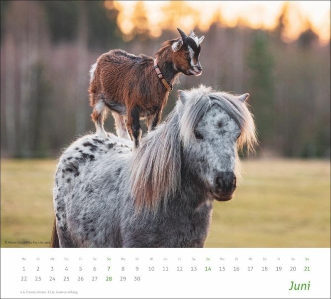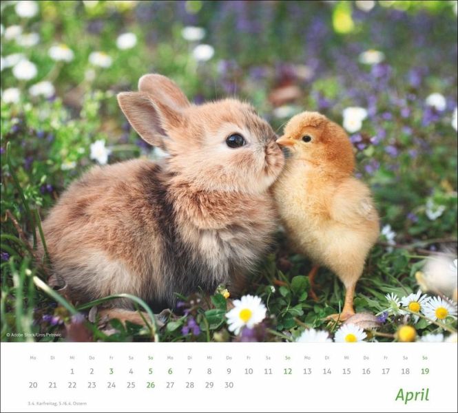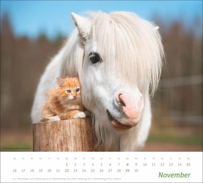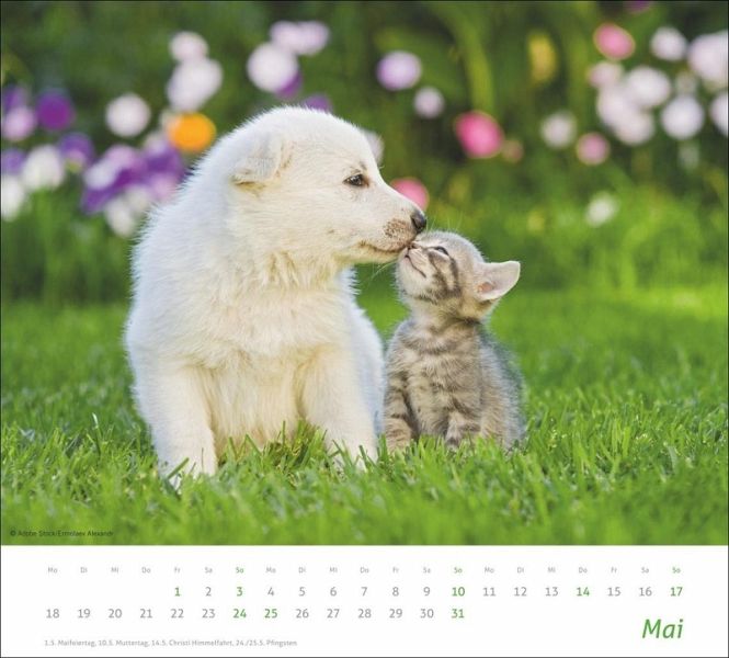 Fotokalender mit niedlichen, großformatigen Aufnahmen von Tierfreundschaften - dekorativ an jeder Wand! Mit schlichtem Kalendarium.