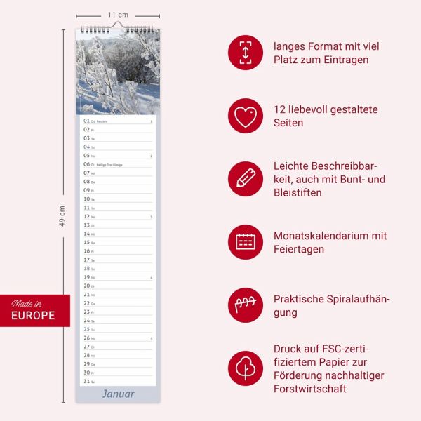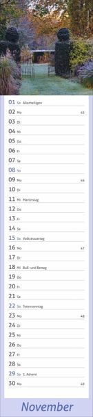 - Organisationshilfe mit Ausblick: Garten-Kalender 2026 im praktischen Langformat (11 x 49 cm)- Monat für Monat hübsche Garten-Fotos genießen: Üppige Pflanzen- und Blumen-Arrangements treffen auf weitere stimmungsvolle Motive aus der Natur- Wandplaner für alle wichtigen Termine: mit übersichtlichem Kalendarium, Feiertagen und viel Platz für Eintragungen- Das ideale Geschenk für Gartenfreund:innen: Streifenkalender 2026 fürs Büro oder Daheim- Für Hobby-Gärtner und alle, die mit Vorliebe draußen sind: Langplaner von Heye im Athesia Kalenderverlag