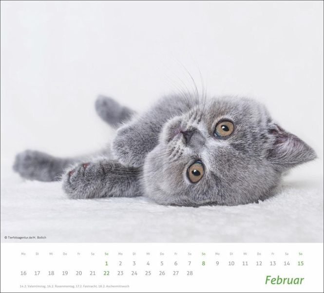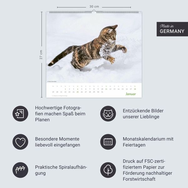 - Monat für Monat Katzenliebe pur: ein Posterkalender, der verzaubert - Bühne frei für Samtpfoten aller Art: anmutige Katzenbabys, draufgängerische Cool-Cats und flauschig-weiche Miezen- Sorgt für wohliges Schnurren: Monatskalender mit 12 hochwertigen Aufnahmen von niedlichen Stubentigern - mit schlichtem Kalendarium- Das ideale Geschenk für Katzenliebhaber:innen: großer Wandkalender im Format 30 x 27 cm- Ein Herz für süße Vierbeiner: die Tierkalender von Heye im Athesia Kalenderverlag