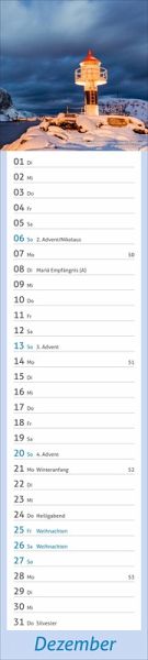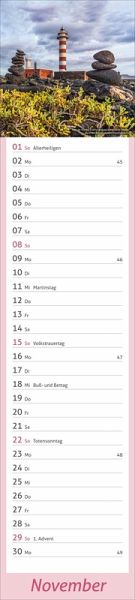 Praktischer Langplaner mit hübschen Leuchtturm-Motiven und übersichtlichem Kalendarium für Eintragungen.