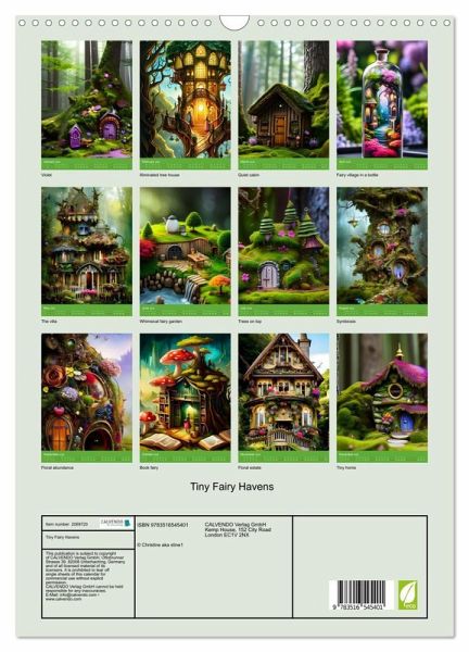 QUALITY - High-quality photo calendar with 12 beautiful images on light-resistant paper, robust spiral binding with hanger.SUSTAINABLE - Significant waste reduction due to print-on-demand production, environmentally friendly FSC-certified paper, produced in the UK, climate-conscious logistical processes.PERFECT GIFT - calendars for friends and family, for children, all ages and all occasions, from Christmas to birthdays and everything in between.LOTS OF CHOICE - Wall calendars in different sizes (DIN A4 and DIN A3), for any topic and personal taste, featuring photography, painting and illustrations.A Whimsical Journey through Enchanted Abodes, author: Christine aka stine1