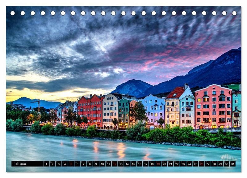 Profifotograf führt uns mit jedem Monat zu den schönsten Orten Tirols. Berge, Seen, Flüße und idyllische Orte zeichnen diesen Kalender aus