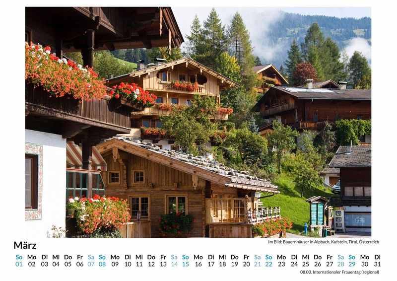 Entdecken Sie die atemberaubende Schönheit Tirols mit unserem exklusiven Wandkalender! Lassen Sie sich Monat für Monat von 12 sorgfältig ausgewählten Motiven verzaubern, die die majestätischen Alpen, idyllische Dörfer und unberührte Natur dieser einzigartigen Region Österreichs zeigen. Gedruckt auf hochwertigem, lichtbeständigem Bilderdruckpapier, bringt dieser Kalender die Magie Tirols direkt in Ihr Zuhause. Nachhaltigkeit liegt uns am Herzen: Unsere Kalender werden in Deutschland auf FSC-zertifiziertem Papier produziert. Perfekt als Geschenk oder für die eigene Wand - holen Sie sich ein Stück Tirol in Ihr Leben! Jetzt bestellen und jeden Monat genießen! Hochwertig Erleben Sie ein Jahr voller Eleganz mit unserem Premium-Fotokalender. Jedes der 12 Motive ist auf hochwertigem, lichtbeständigem Bilderdruckpapier gedruckt, um die Lebendigkeit jedes Bildes zu bewahren. Die robuste Spiralbindung gewährleistet Langlebigkeit und einfache Handhabung. Nachhaltig Unser Engagement für die Umwelt spiegelt sich in jedem Exemplar wider. Durch die Produktion auf Abruf reduzieren wir signifikant unseren Abfall. Wir verwenden ausschließlich umweltfreundliches, FSC-zertifiziertes Papier. Stolz gefertigt in Deutschland, achten wir bei unserer Logistik auf Klimaschutz, um unseren ökologischen Fußabdruck zu minimieren. Das ideale Geschenk Dieser Kalender ist das perfekte Präsent für jeden Anlass - ob Weihnachten, Geburtstage oder einfach als liebevolle Aufmerksamkeit zwischendurch. Geeignet für Freunde, Familie, Kinder und Erwachsene gleichermaßen, bereichert er jedes Zuhause mit seiner Vielfalt und Schönheit, unabhängig vom Alter der Beschenkten.