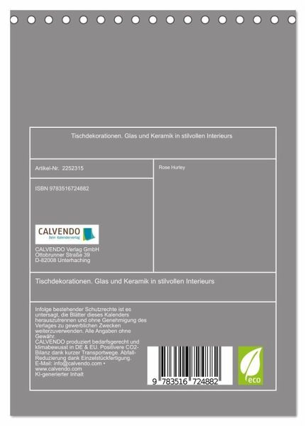 QUALITÄT - Hochwertiger Fotokalender mit 12 wunderschönen Motiven auf lichtbeständigem Bilderdruckpapier, robuste Spiralbindung.NACHHALTIG - deutliche Abfallreduzierung durch bedarfsgerechte Einzelstückfertigung, umweltfreundliches FSC-zertifiziertes Papier, Produktion in Deutschland, klimabewusste Logistik.PERFEKTES GESCHENK - Kalender für Freunde und Familie, für Kinder und Erwachsene, jung und alt, zu Weihnachten, Geburtstag oder zwischendurch.VIELFALT - Bildkalender in verschiedenen Formaten, z.B. DIN A5, DIN A4, DIN A3 sowie DIN A2. Ob Naturmotiv, Gemälde oder Fotos, ideal für ein persönliches Wohlfühlambiente.Die Kunst moderner Tischdekoration in eleganten Wohnräumen von Autor(in): Rose Hurley