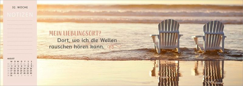 Dieser dekorative und liebevoll gestaltete Wochenkalender ist ein kleiner Schritt zu mehr Lebensfreude und schenkt jede Woche eine neue Inspiration, um den Alltag leicht zu nehmen. Eine schöne Schreibtischdeko und ein Kurzurlaub für eine liebe Person oder dich selbst.