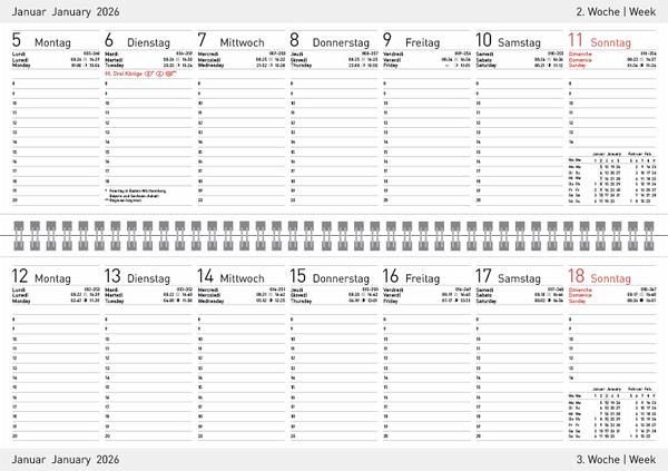 Format: 29,8 x 10,5 cm; Farblich hervorgehobene Feiertage Schulferien und Feiertage (D,A,CH) sowie Vorschau für 2027 perfektes Lay-Flat verhalten Kalendarium auf Deutsch, Englisch, Französisch und Italienisch